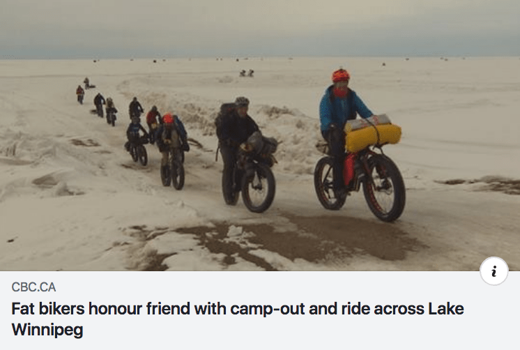 October 26, 2018 746 × 502 CBC News – 5 Mar 18 – Fatbikers Honour Friend w Camp-out & Ride on Lake Wpg